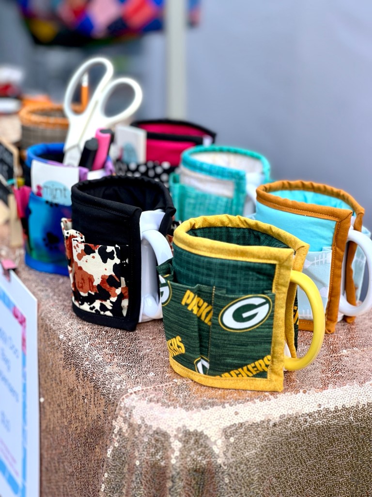 Creative & Functional Textiles Totes & Bags Zipper Pouches, Coin Purses, & Key Fobs Table Runners Useful Things Mug Caddies are the cutest desk organizer! Clip on your leash, belt loop, or bag so you are always prepared with a doggy poo bag! Share this: Share on X (Opens in new window) X Share on Facebook (Opens in new window) Facebook Like Loading...